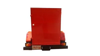 Confeccionado em chapa metálica, com assoalho em compensado naval resistente à água. Porta traseira.